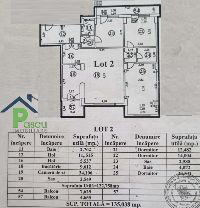 Apartamentul este situat la etajul 5/10, are o suprafata extrem de generoasa de 135 metri patrati utili (ce include si suprafata balcoanelor), este semi-decomandat, se bucura de 3 bai (2 dormitoare fiind matrimoniale cu baie si balcon propriu), bucatarie inchisa, in suprafata de 10 mp, cu logie inchisa, unde este amplasata centrala termica proprie si masina de spalat.