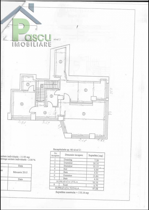Apartamentul este un duplex cu 4 camere, cu o suprafata utila de 170 metri patrati compus din :